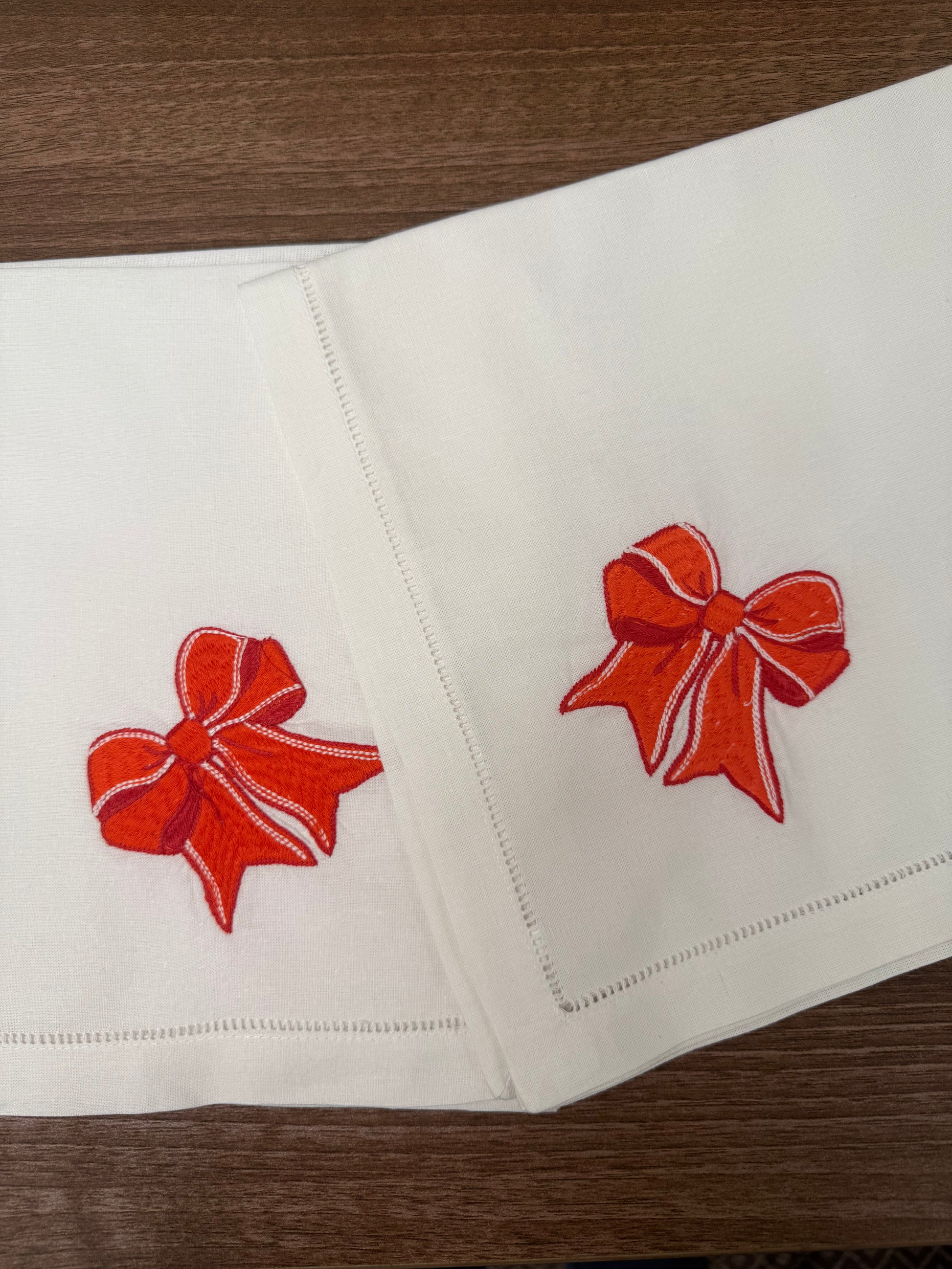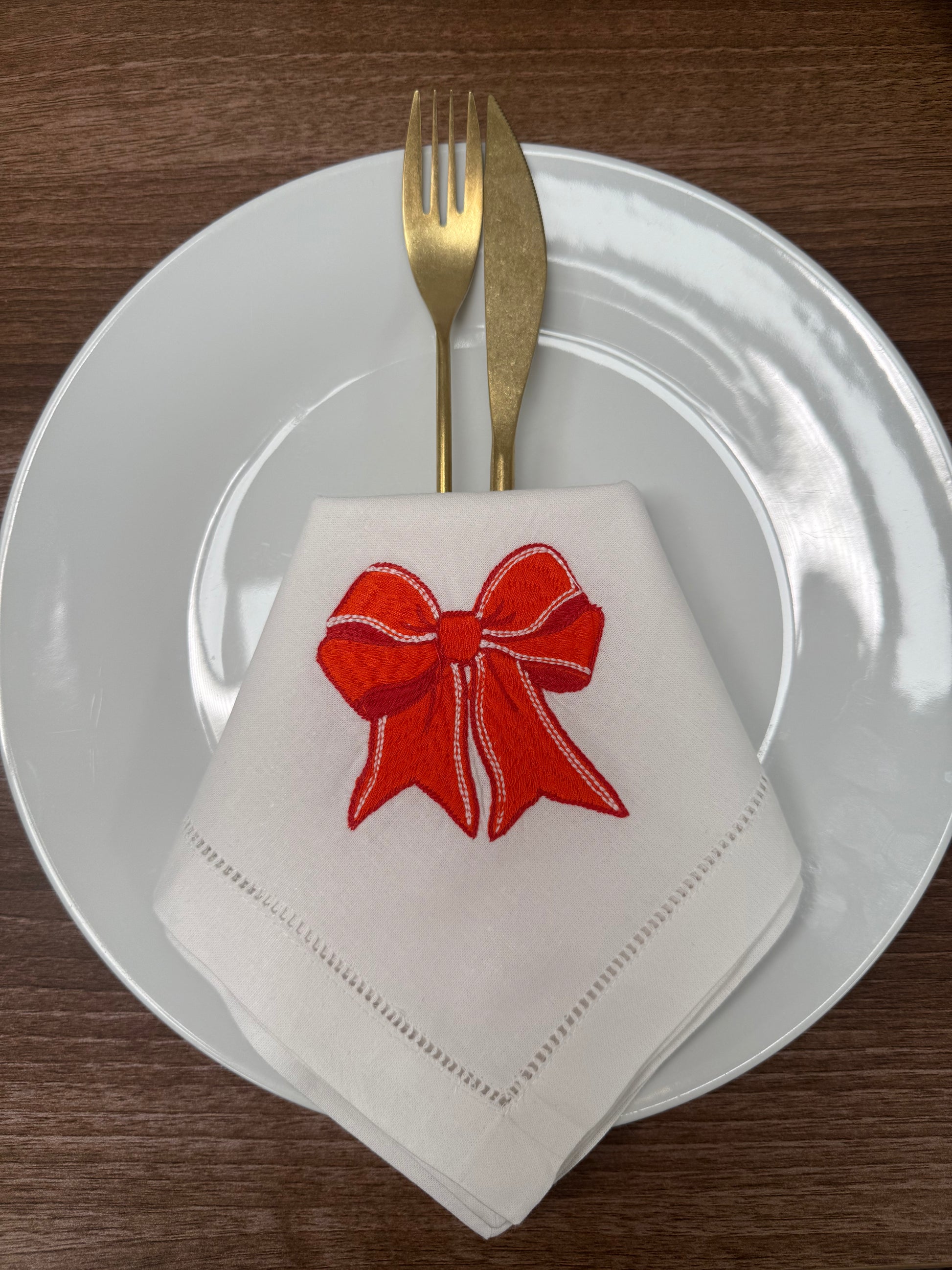 Bow Cotton Napkin - Red and White 45cm x 45cm